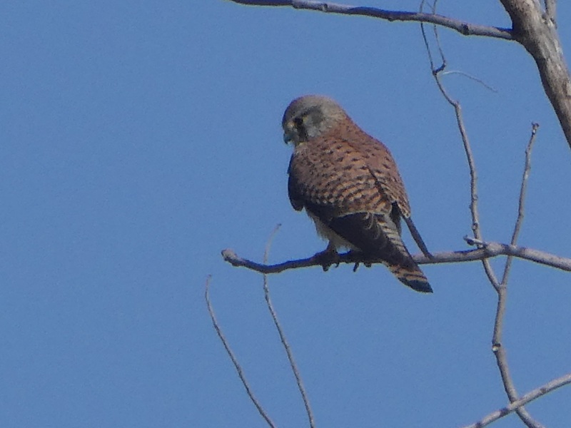 履中陵では上空をハイタカと思われるタカが舞う。置物のようなマガモや、カンムリカイツブリなどを観察後、大仙公園に行くとハイタカのオスが木に止まっていた。