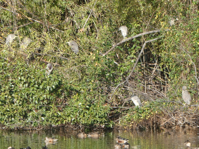 最終の芦ヶ池に来て初めて多くのカモに出会えた。ねぐらにしているのか、ゴイサギもたくさん集まってきていた。(参加者13名 野鳥39種)